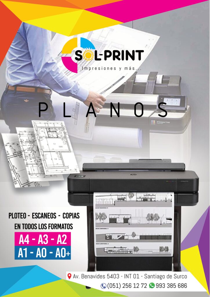 Somos una empresa que brinda servicio profesional de impresiones en general. Brindamos soluciones a necesidad gráfica, en imprenta, publicidad e impresiones en alta y bajo volumen. Realizamos ploteo, digitalización y copia de planos A2, A1, A0 +